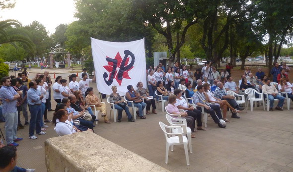 En el acto se hubo oradores y se leyeron poemas y testimonios para iniciar la marcha por las calles hasta el destacamento 123, y luego al Colegio de Abogados para asistir a una charla Debate sobre el Comunismo en la Dictadura.