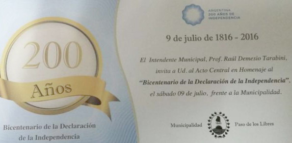 Locales | Los actos centrales por el Bicentenario de la Declaración de la Independencia de nuestro país, se llevarán a cabo el próximo sábado 9 de julio, frente al Palacio Comunal....